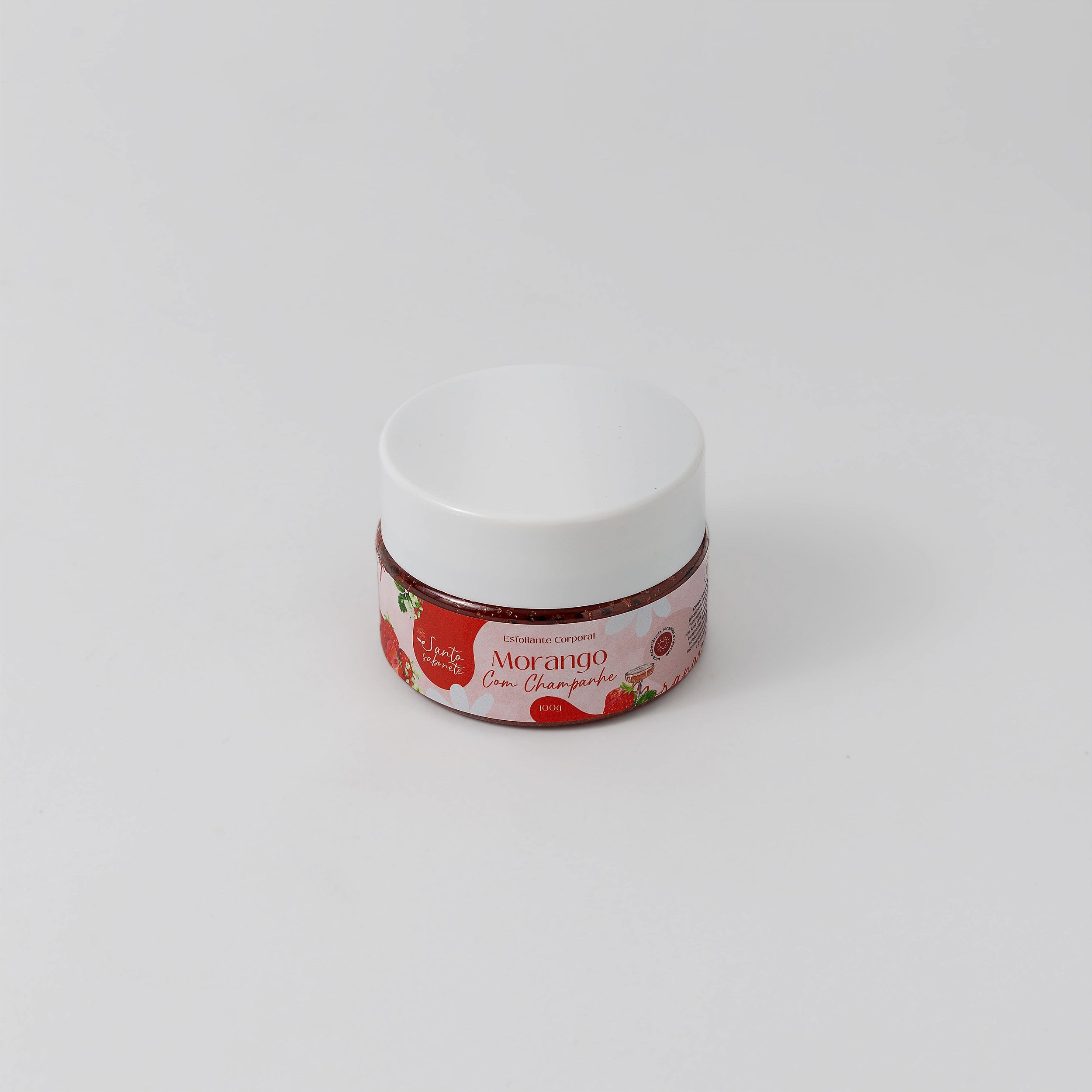Descubra o segredo para uma pele suave e radiante com o nosso Esfoliante de Morango com Champanhe, enriquecido com Manteiga de Cupuaçu e Óleo de Amêndoas.