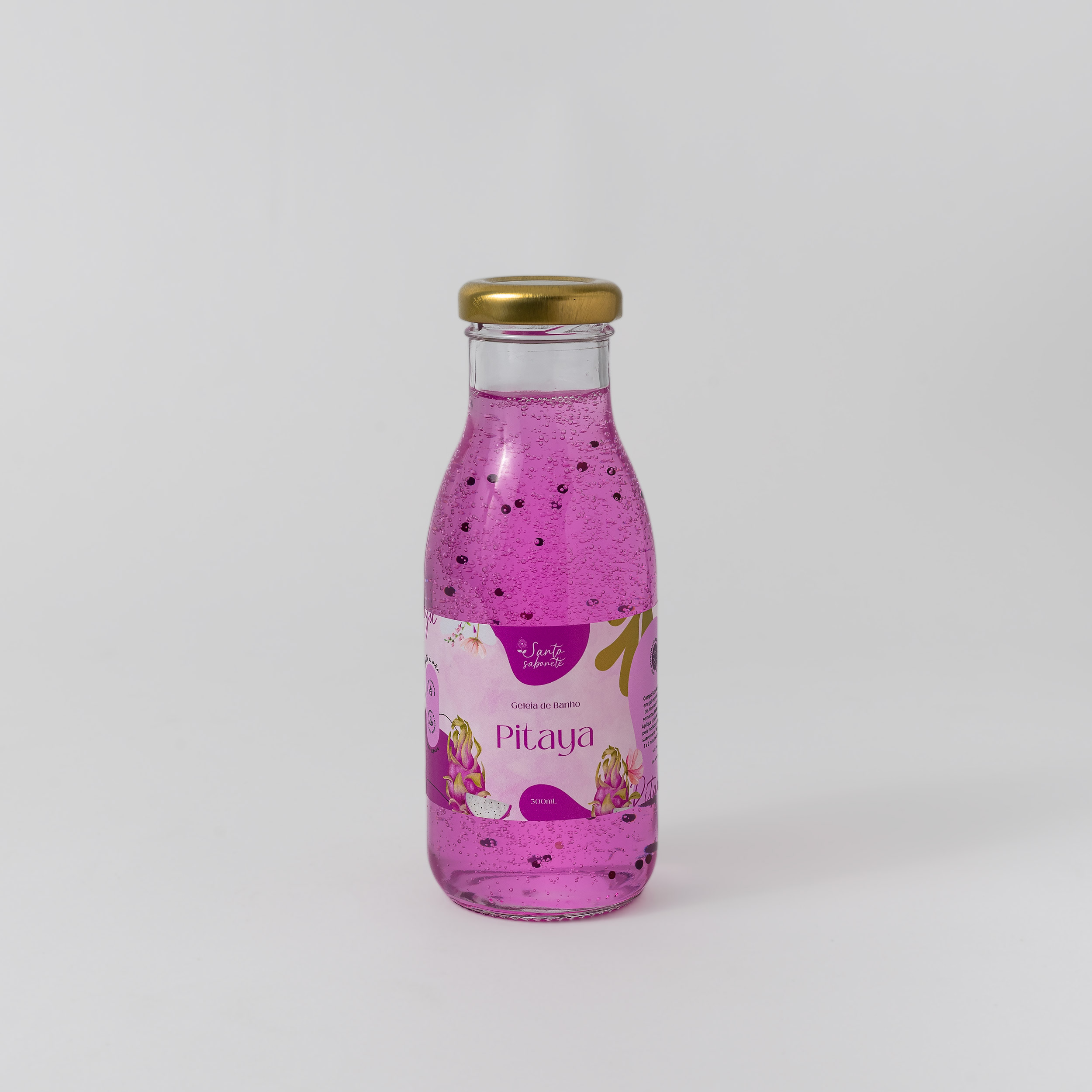 Composição: base para sabonete líquido em gel, essência de pitaya, extrato de Aloe Vera, lauril e corante.